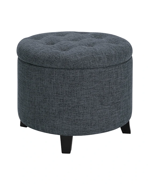 Homcom Storage Ottoman, Round Stool Chair with Cushioned Top, Light
