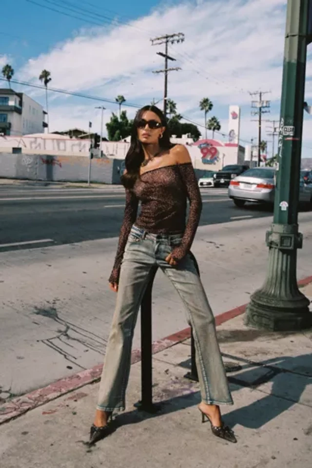Edikted Boot Cut Low Rise Mud Washed Jeans