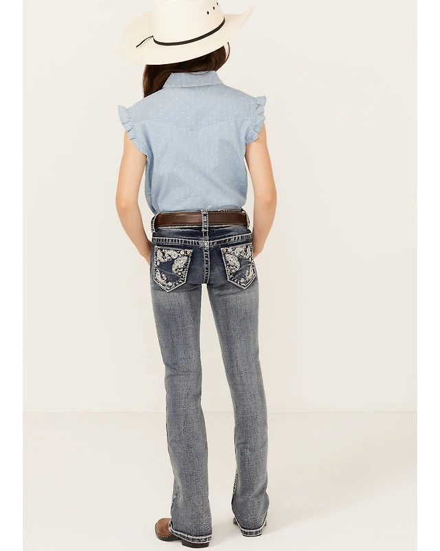 Shyanne Little Girls' Medium Wash Faded Paisley Pocket Stretch Bootcut Jeans