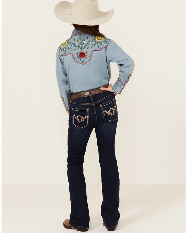 Shyanne Girls' Medium Wash Double Horseshoe Pocket Bootcut Stretch Denim Jeans