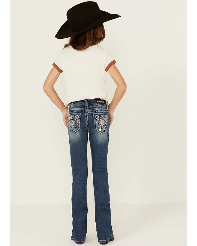 Grace LA Girls' Medium Wash Thunderbird Pocket Bootcut Stretch Denim Jeans