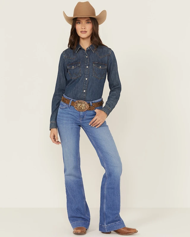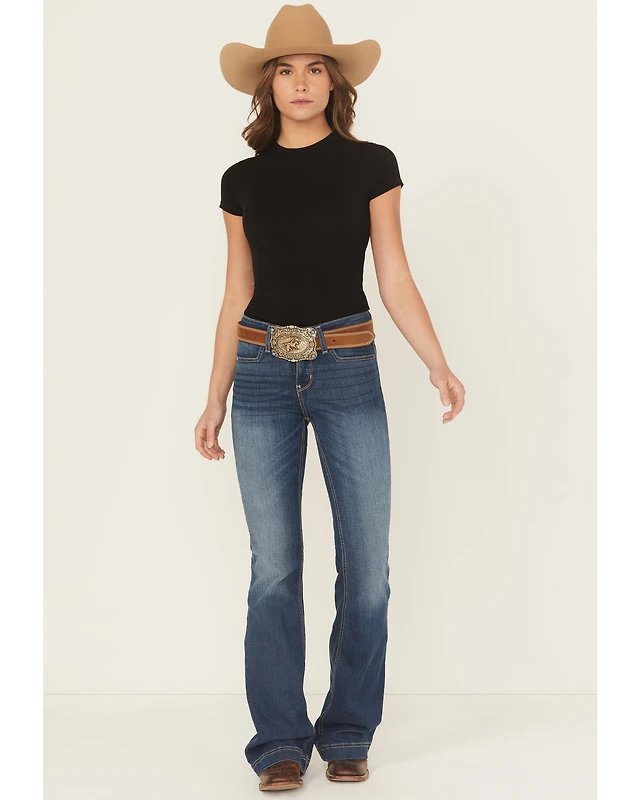 Cinch Women's Lynden Medium Wash Mid Rise Trouser Stretch Denim Jeans
