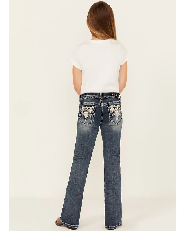 Grace LA Girls' Chevron Embroidered Medium Wash Bootcut Stretch Denim Jeans