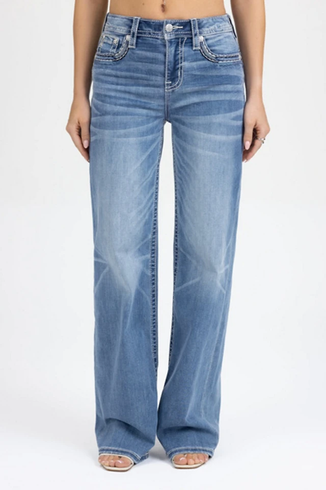 Miss Me Naia Blu Stitched Wide Leg Jean