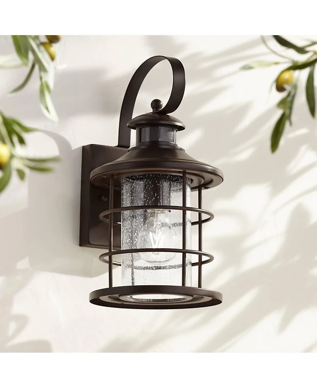 Midland Urban Barn Industrial Outdoor Wall Light Fixture Led Black Metal 9" Gooseneck Arm Motion Sensor Dusk to Dawn for House Porch Patio Outsid