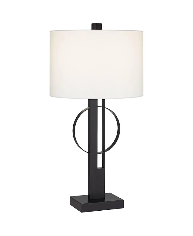 Possini Euro Design Kingston Modern Mid Century Table Lamp 32 3/4" Tall Ceramic with Usb Dimmer Drum Shade for Bedroom Living Room Office