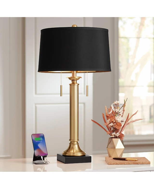 Possini Euro Design Deacon 26" High Industrial Desk Lamps Set of 2 Usb Port Ac Power Outlet Gooseneck Bronze Finish Metal Charging