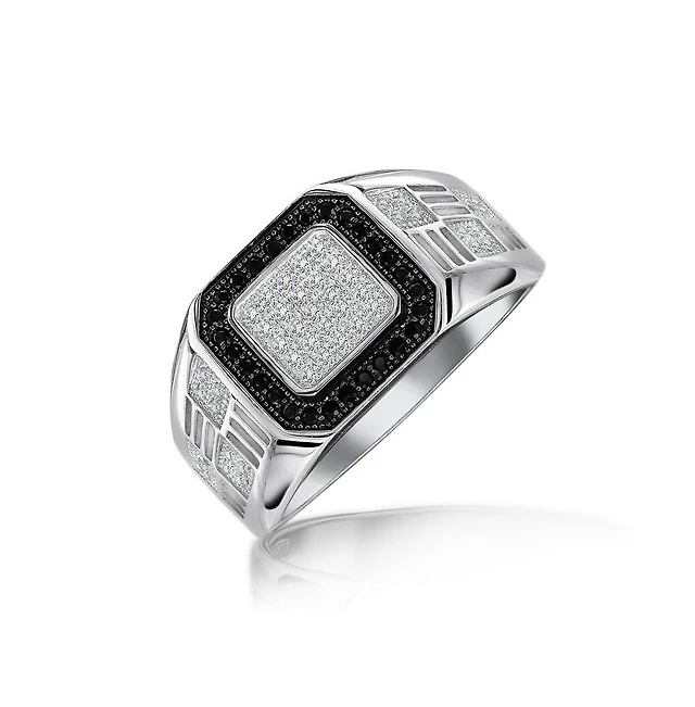 Bling Jewelry Mens Micro Pave Black Halo Square Two Tone Cz Statement Ring Sterling Silver