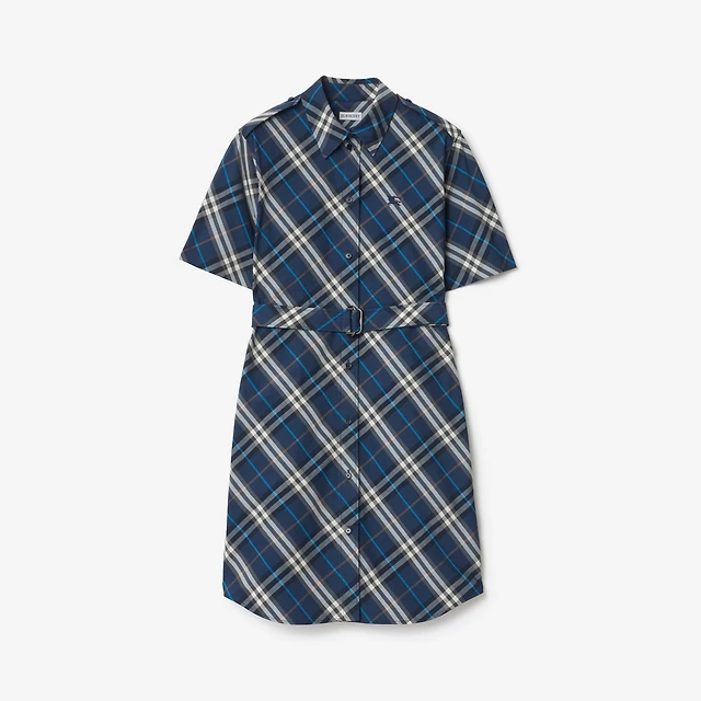 Check Cotton Shirt Dress in Pilot blue - Women | Burberry® Official