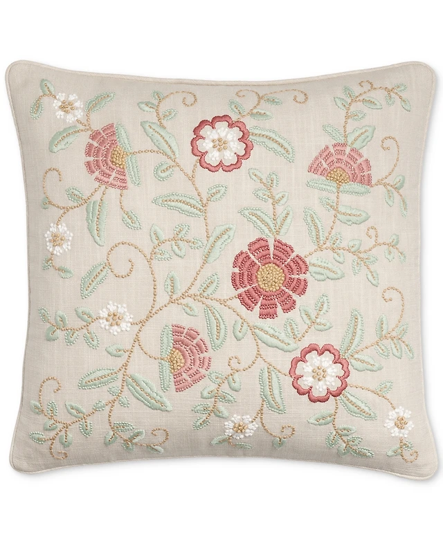 Charter Club Embroidered Flowers Decorative Pillow, 18" x 18", Exclusively at Macy's