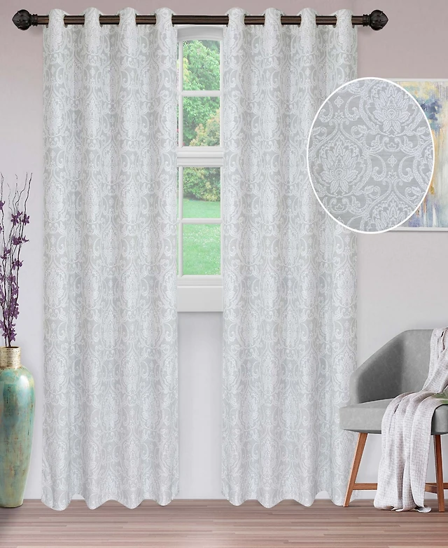 SunSmart Camille Jacquard Room Darkening Curtain for Bedroom, Grommet Top Design Panels Pair Living Room, Width 50 length inches Single Panel