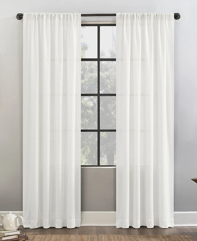 Farmhouse Textured Back Tab/Rod Pocket Sheer Window Curtain Panels