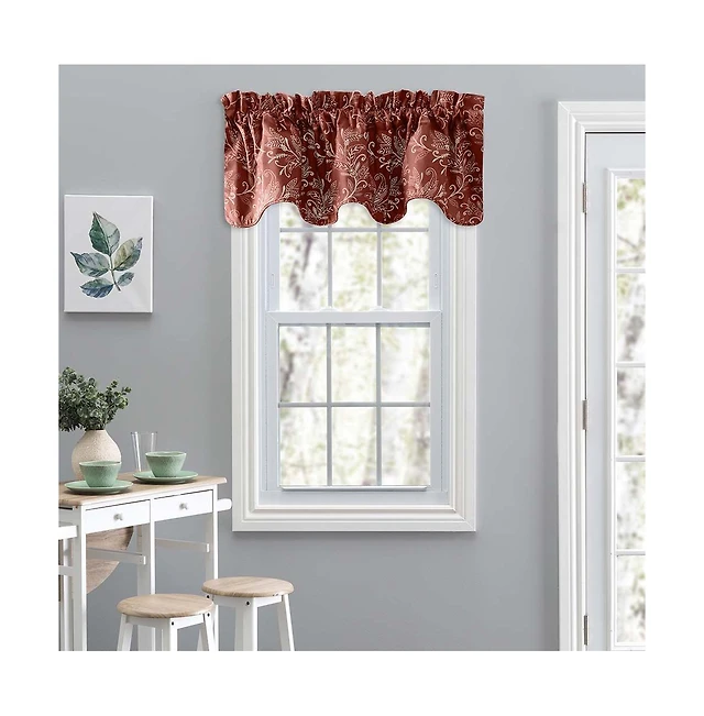 Ellis Curtain Lexington Leaf Pattern on Colored Ground Scallop Valance 58"x15" Brick