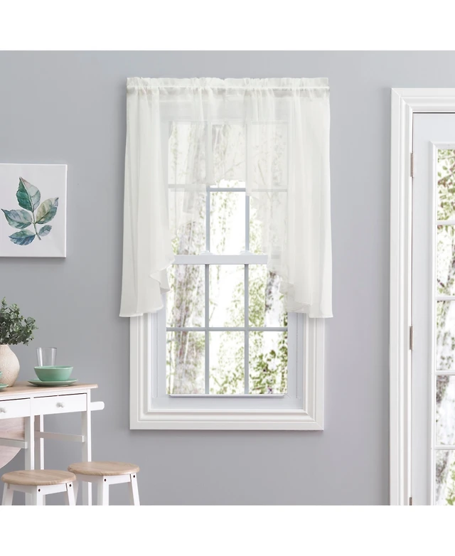 Kate Aurora Premium Rod Pocket Sheer Voile Single Window Curtain Panel - 84 in. Long - White