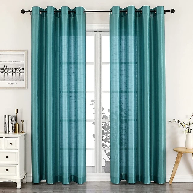 Kate Aurora Basic 2 Piece Navy Blue Lightweight Grommet Top Sheer Voile Window Curtain Panels - 84 in. Long