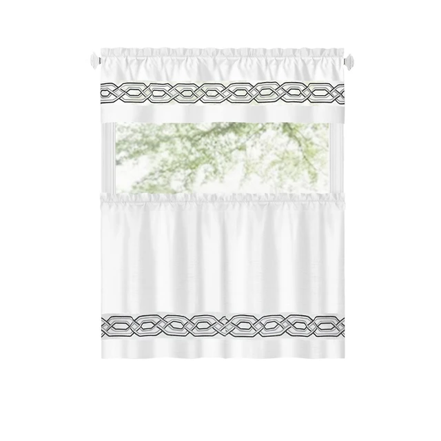 Kate Aurora Complete 3 Piece Country Farmhouse Plaid Gingham Black & White Buffalo Check Kitchen Curtain Tier & Valance Set