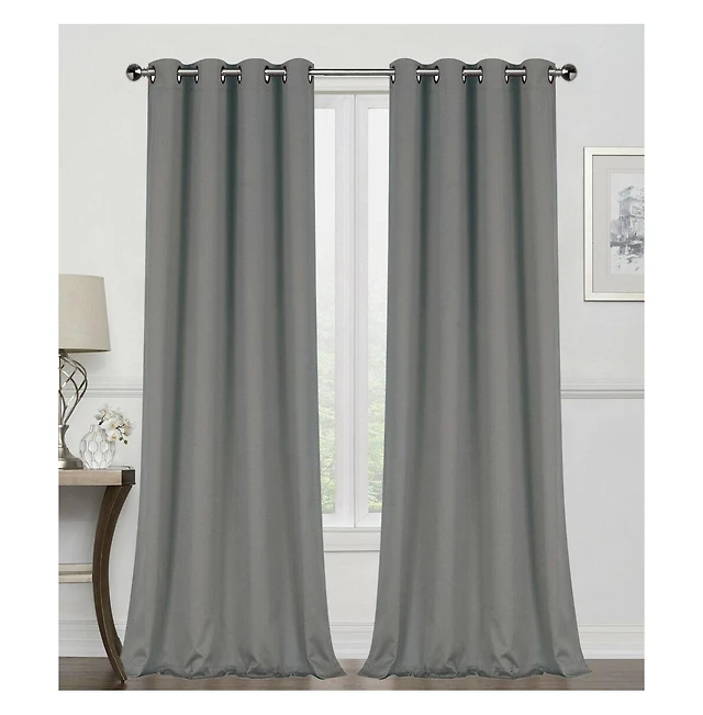 Kate Aurora 2 Piece Sadie Metallic Sparkle Grommet Top Gray Room Darkening Curtain Panels
