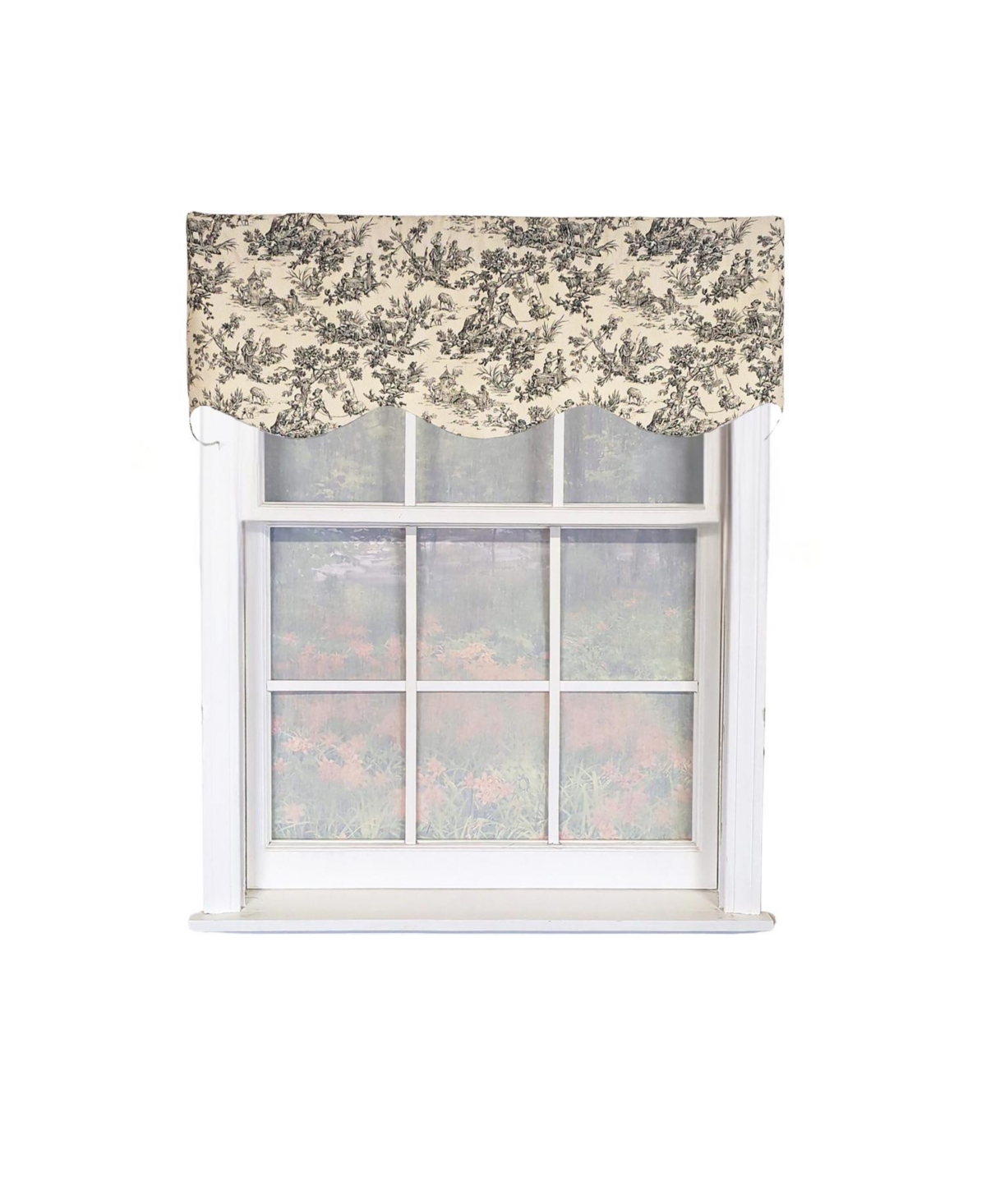 Rlf Home Naomi Toile Tailored 100% Cotton with Fully Lined 3" Rod Pocket Valnance for Windows 50" x 14" Red