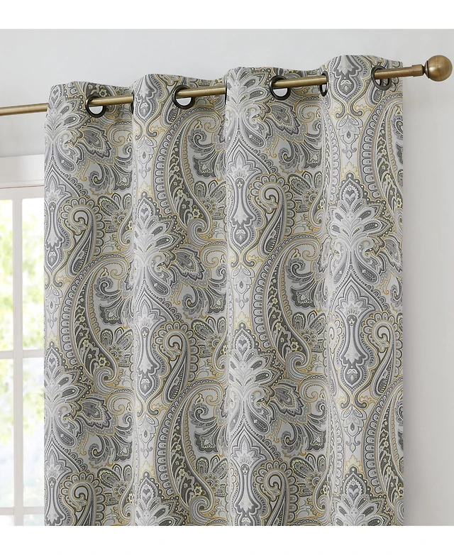Hlc.me Paris Paisley Decorative Print Damask Pattern Light Reducing Filtering Grommet Window Curtain Panels, Set of 2 (Grey yellow, 50 W x 96 L