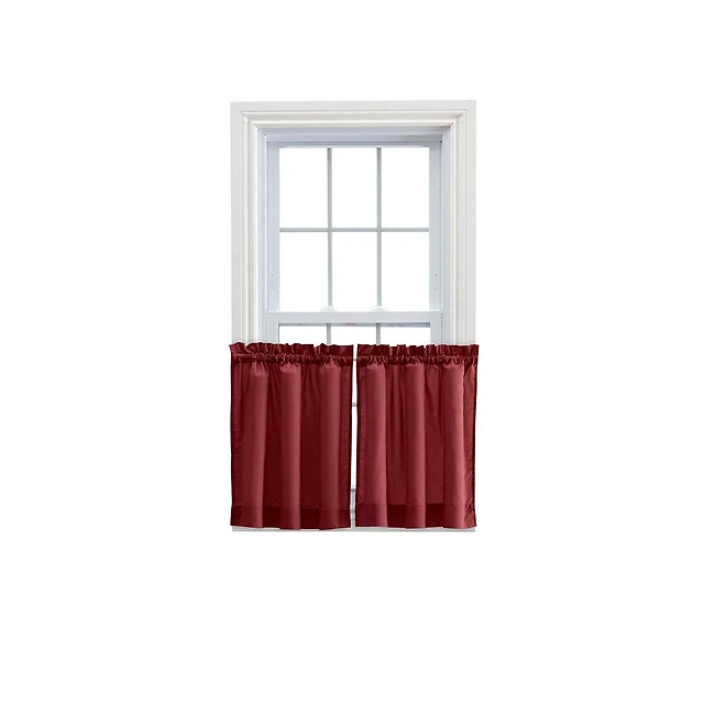 Ellis Bella Rose Stylish Medium Scale Printed Floral Pattern 1.5" Rod Pocket Tier 56"x36" Red