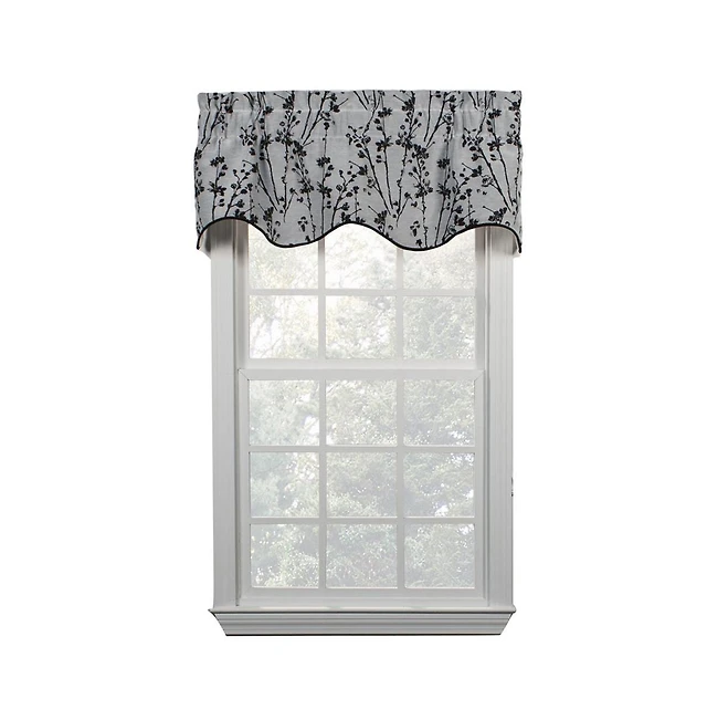 Ellis Curtain Victoria Park Toile Room Darkening Solid Natural Stylish Color Lined Scallop Window Valance - 70 x15, Gray