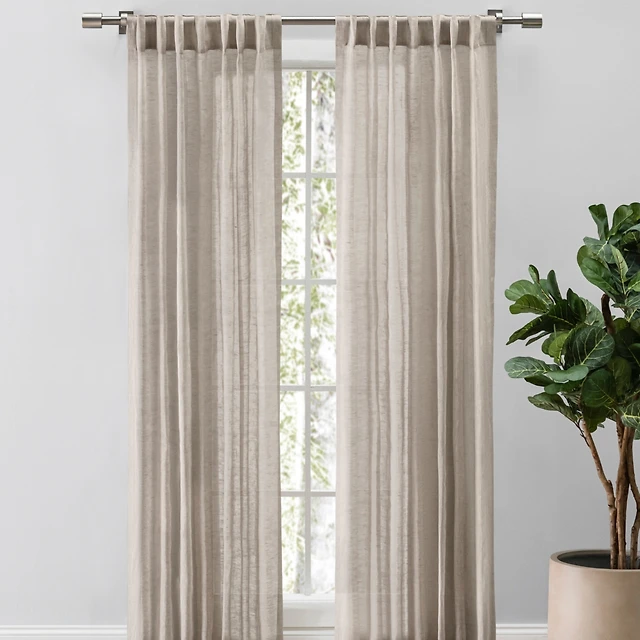 Ihi Home Lurex Linen Sheer Curtain Panel - Rod Pocket and Hidden Back Tabs