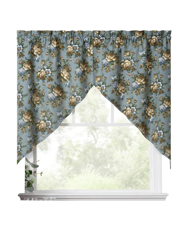 Ellis Bella Rose Stylish Medium Scale Printed Floral Pattern 1.5" Rod Pocket Tailored Valance 58"x15" Mist