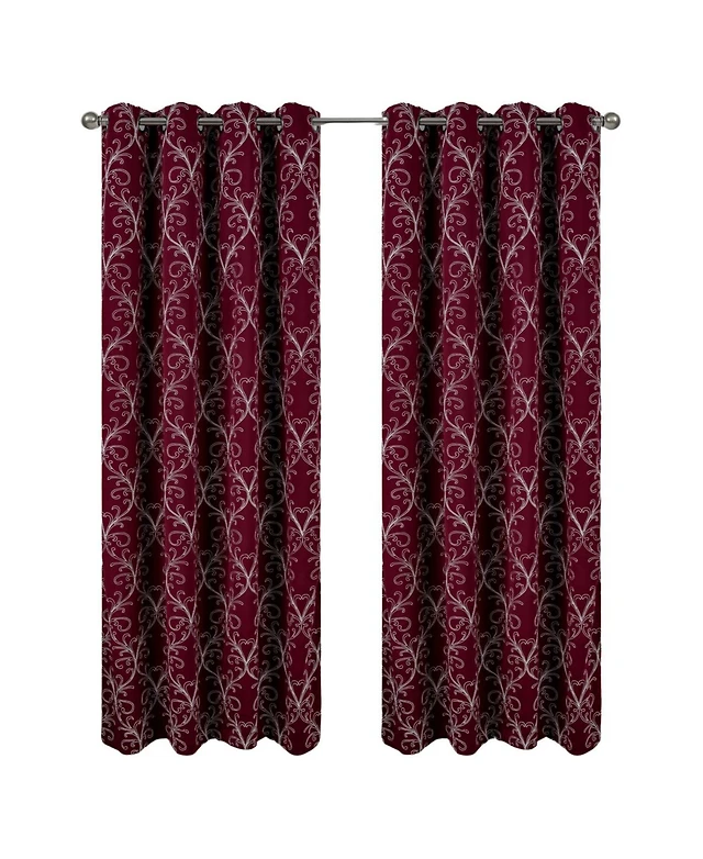 Rt Designers Collection 100% Polyester 140 Gsm Reed Embroidered Grommet Curtain Panel 54" x 90" Burgundy