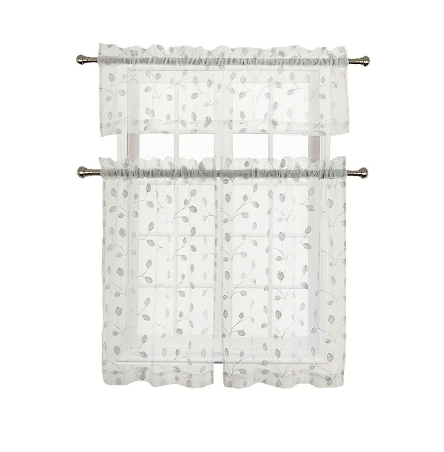 Bridget Embroidered Leaf Sheer Rod Pocket Window Tie-up Shade