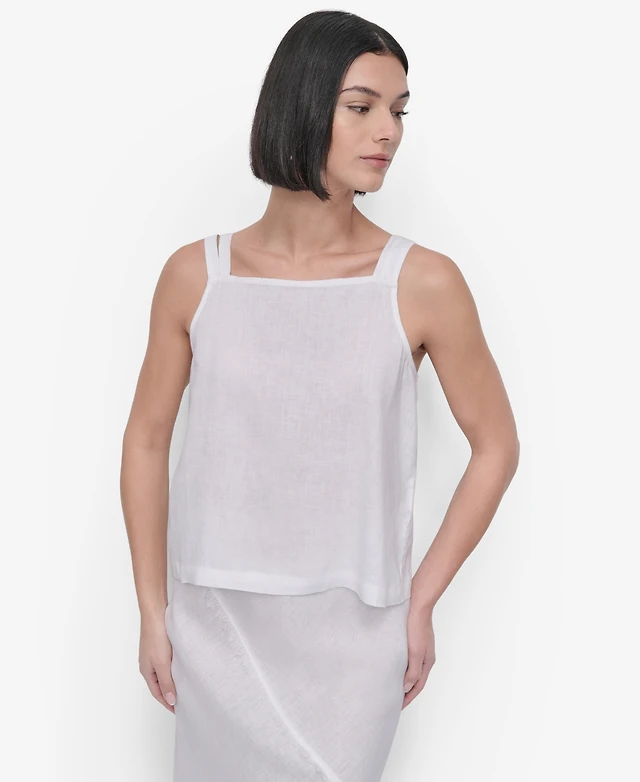 Dkny Womens Linen Tie Strap Tank Top Wide Leg Pull On Pants