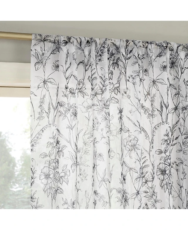 Superior Poppy Floral Textured Sheer Window Curtain Panel Set