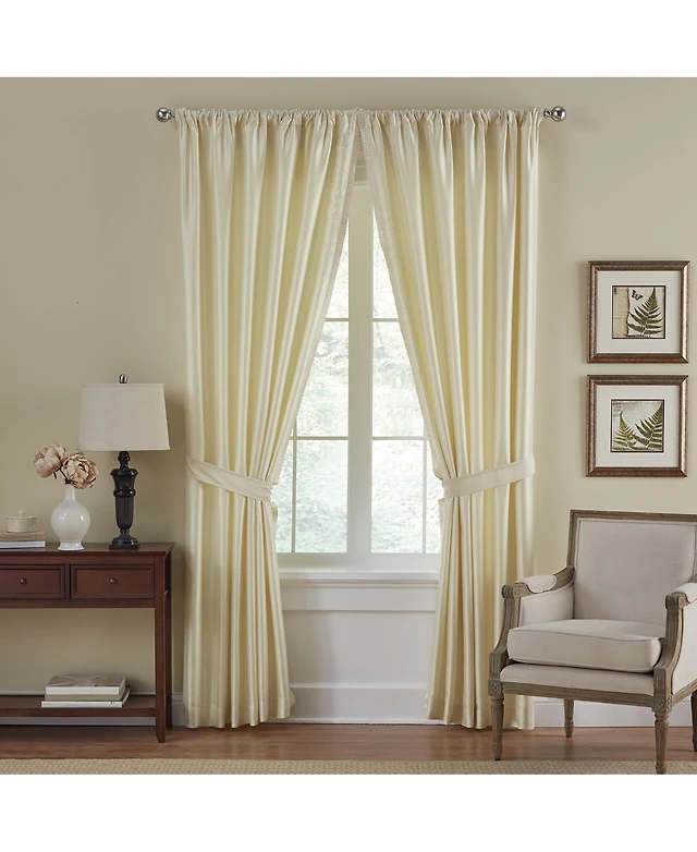Ellis Curtain Richmark Tailored Rod Pocket Design Curtain Panel Pair for Windows with Ties 70" x 72" Natural