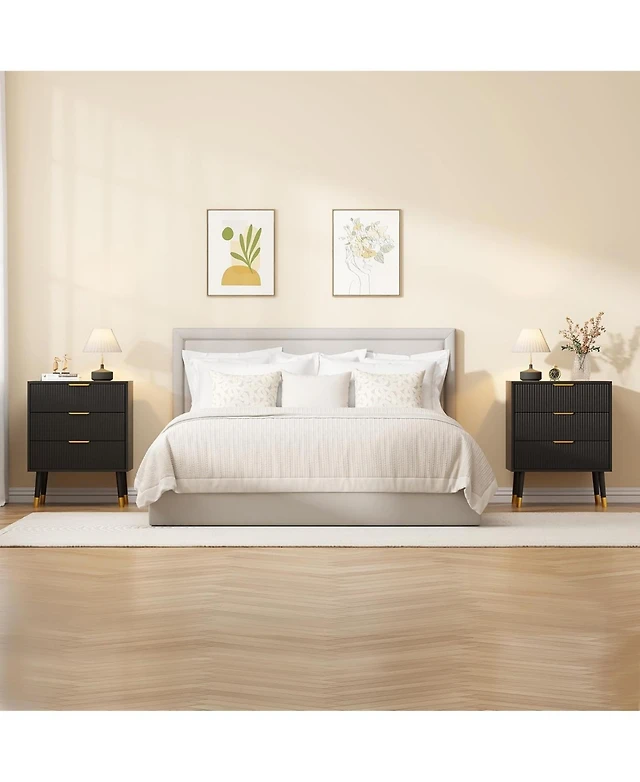 gaomon Fluted 3 Drawer Dresser Set of 2, Large Modern Nightstand Cabinet with Gold Metal Handles, End Table Wood Chest of Drawers for Bedroom