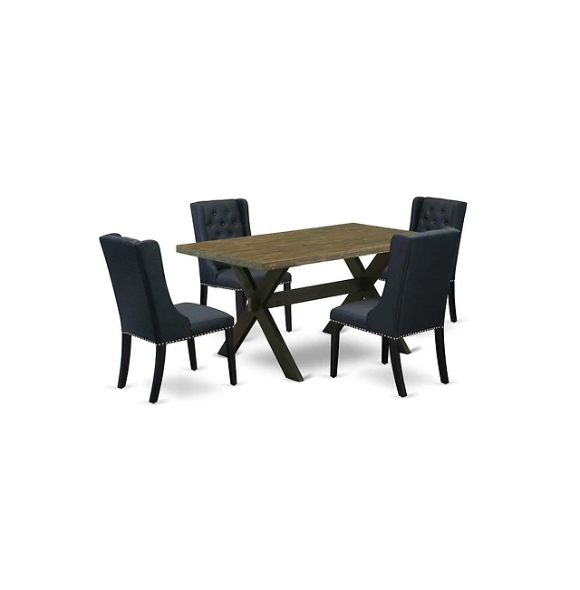East West Furniture 5 Piece Modern Dining Table Set - Linen White Dining Room Table and 4 Linen White Kitchen Chairs with Double X-Back