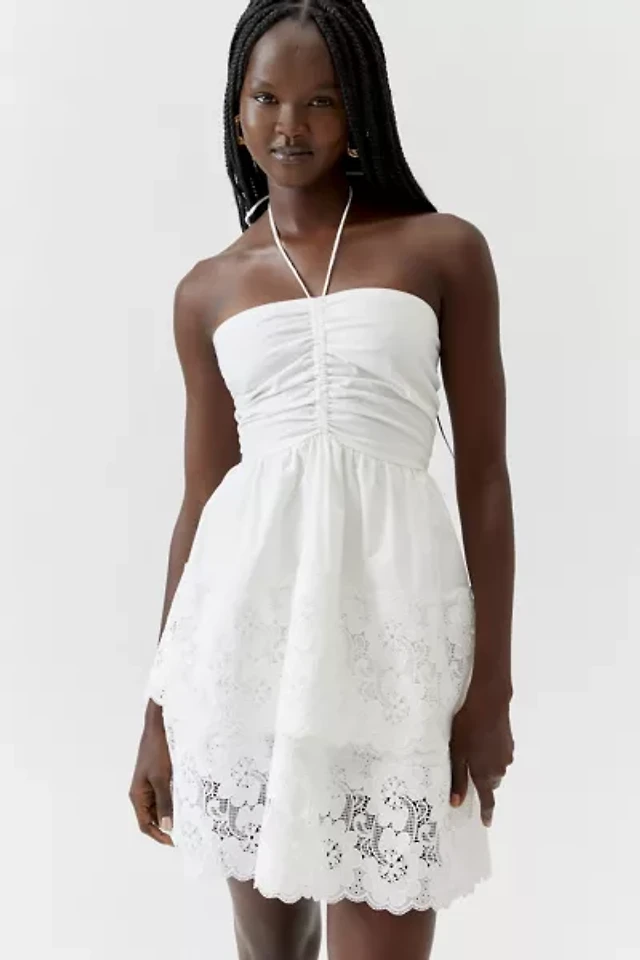 UO Fashionably Late Mesh Wrap Plunging Halter Mini Dress