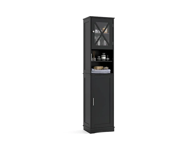 Streamdale Tall Storage Cabinet with Glass Door and Shelves for Home or Office