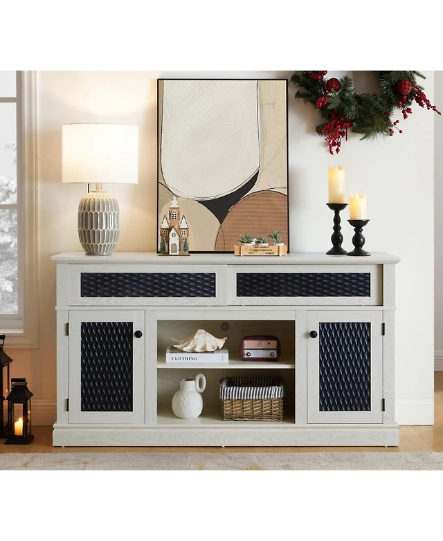 Streamdale Embossed Tv Stand with Open and Closed Storage, Sliding Door, 58.27"W
