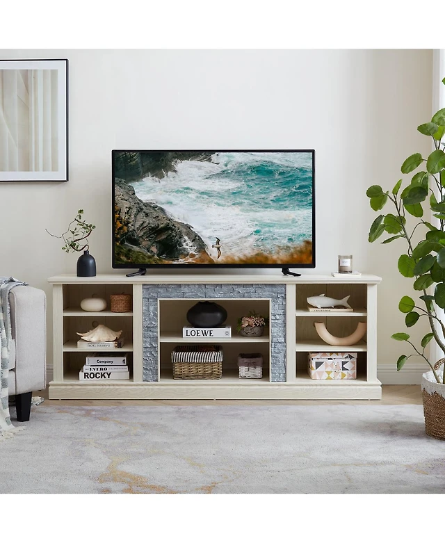 gaomon Tv Stand for 80 Inch Tv, Industrial Entertainment Center with Drawers, Open Storage & Metal Legs, Black