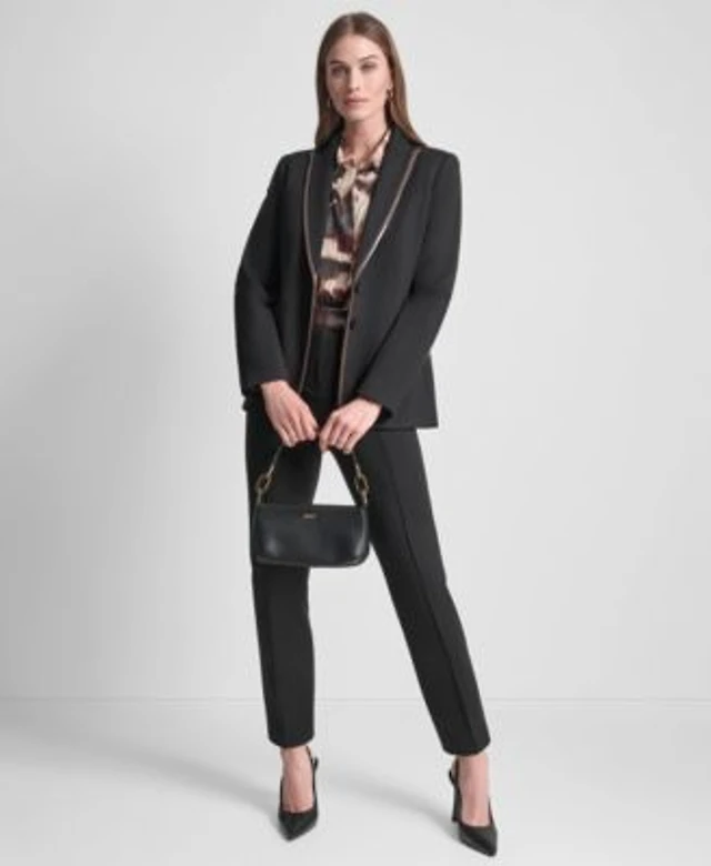 Karl Lagerfeld Paris Women's Convertible Rhinestone-Collar Houndstooth Jacket