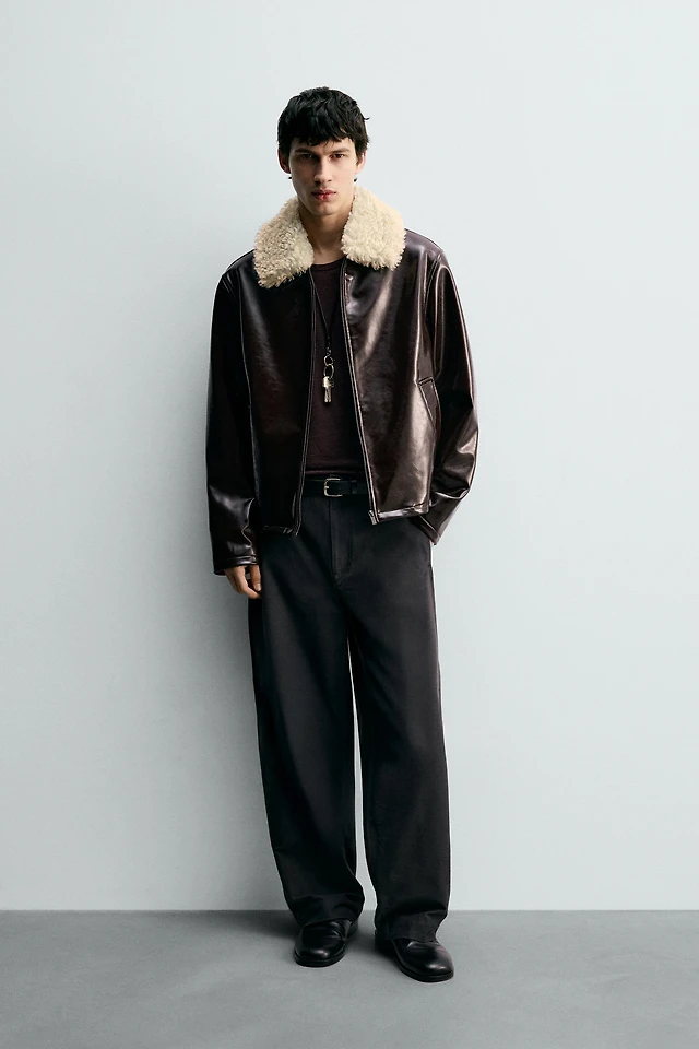 SHINY FAUX FUR COLLAR JACKET ZW COLLECTION