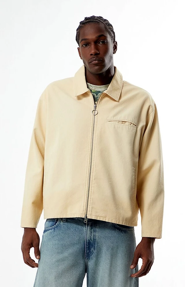 Fear of God ESSENTIALS Abbey Stone Bonded Canvas Zip Up Jacket