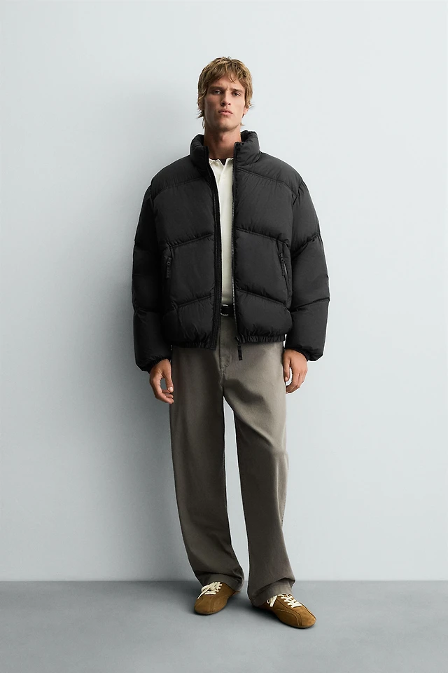 ZW COLLECTION DENIM PUFFER BOMBER JACKET