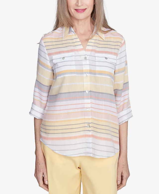 Ruby Rd. Petite Shirt Collar Floral Paisley Button Front Top