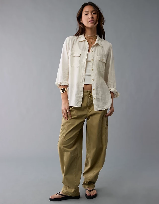 AE Weekend Vibes Linen-Blend Long-Sleeve Button-Up Shirt