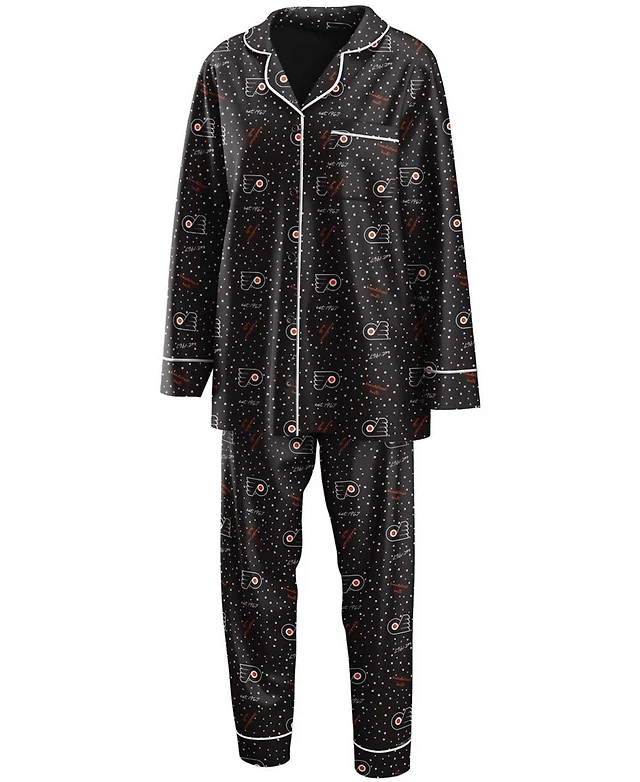 Women's Black Arizona Coyotes Long Sleeve Button-Up Shirt and Pants Sleep Set