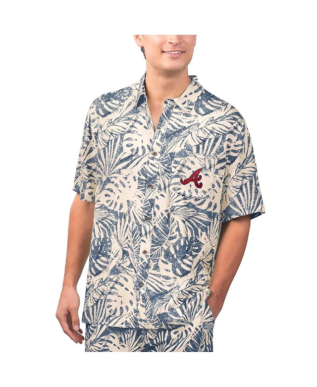 Margaritaville Men's Navy Atlanta Braves Monstera Print Party Button-Up Shirt