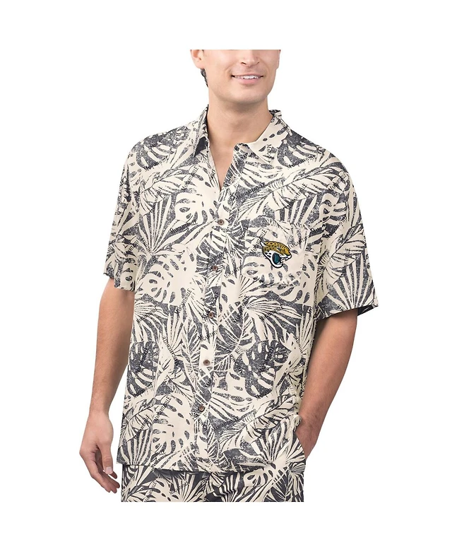 Men's Margaritaville Tan Jacksonville Jaguars Sand Washed Monstera Print Party Button-Up Shirt