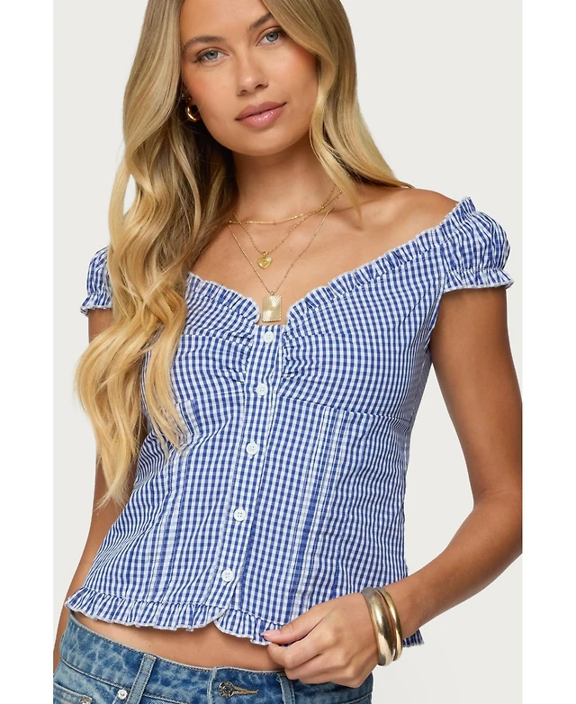 Edikted Women's Dorothie Gingham Button Up Top