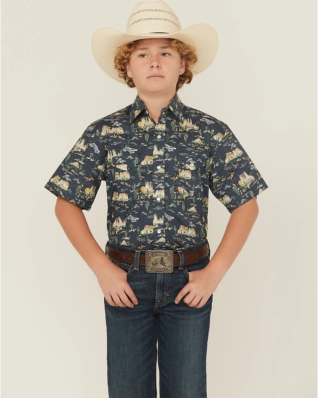 Panhandle Slim Boys' Desert Print Short Sleeve Snap Western Shirt