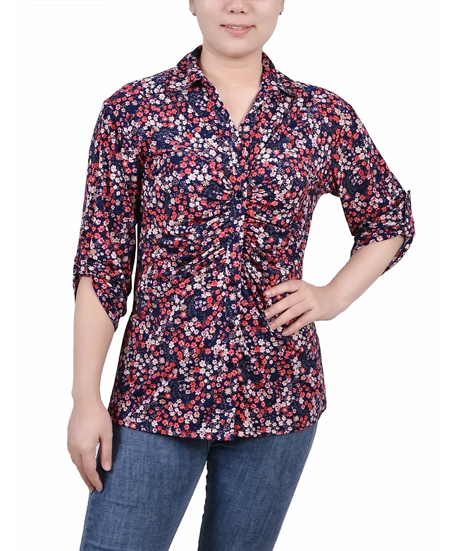 Ruby Rd. Petite Medallion Tile Floral Faux Surplice Top